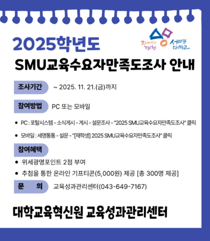 🌟위세광명2점🌟 [대학교육혁신원] 2025 SMU교육수요자만족도조사 안내