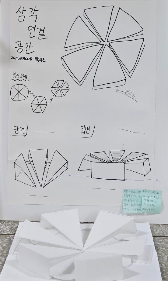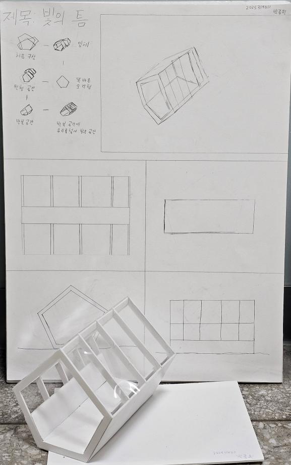 본문 시작 홈으로 커뮤니티 학과소개 교수소개 교육과정 학과 행사 및 활동 커뮤니티 홈페이지가이드 열린정보 학과일정 학과공지 채용정보 및 자료 열린정보 포토갤러리 먹거리, 즐길거리 포토갤러리 사진 사진 영상 사진 페이스북 트위터 프린트 사진 영상 1학년 중간 설계과제 건축학과 43 2025-10-30 1학년은 ‘건축공간구성’에서 스케치와 모형을 통해 공간을 탐구했습니다. 처음 도전한 판넬과 모델링이었지만, 각자의 아이디어와 독창성이 빛나는 작품들이 완성되었습니다 ✨ 건축가로 성장해갈 이들의 다음 걸음이 더욱 기대됩니다! 👣😊 목록 이전2학년 중간 설계과제 다음 세명대학교 홍보 포스터 만족도조사 만족도 조사 이 페이지에서 제공하는 정보에 대하여 만족하시나요? 매우만족 만족 보통 불만족 매우불만족