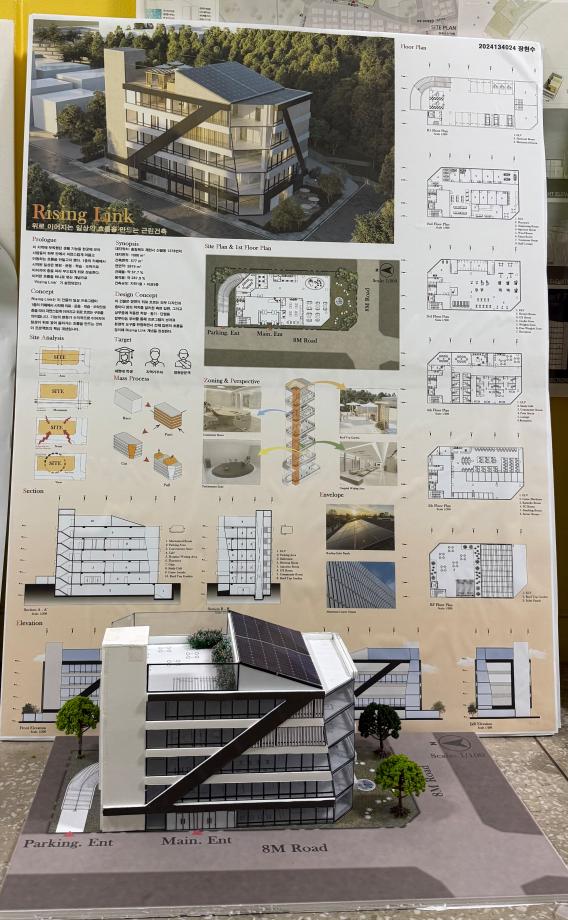 본문 시작 홈으로 커뮤니티 학과소개 교수소개 교육과정 학과 행사 및 활동 커뮤니티 홈페이지가이드 열린정보 학과일정 학과공지 채용정보 및 자료 열린정보 포토갤러리 먹거리, 즐길거리 포토갤러리 사진 사진 영상 사진 페이스북 트위터 프린트 사진 영상 2학년 기말 설계과제 건축학과 87 2025-12-23 2학년 설계 스튜디오 주제는 🏢 근린생활시설. 일상과 도시 사이에서 사람들의 활동을 담아내는 공간을 제안했습니다. 목록 이전3학년 기말 설계과제 다음 1학년 기말 설계과제 만족도조사 만족도 조사 이 페이지에서 제공하는 정보에 대하여 만족하시나요? 매우만족 만족 보통 불만족 매우불만족